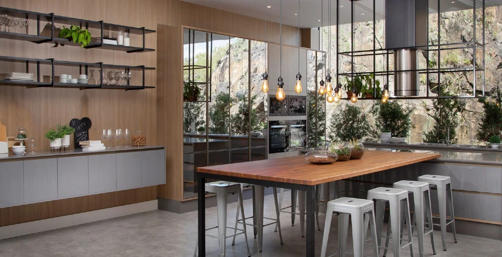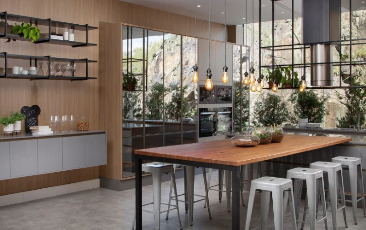 Agora, se você quer utilizá-las em ambientes maiores e que necessitam de bastante luz, a dica é distribuí-las em soquetes, como no projeto da Italínea abaixo. Nessa cozinha planejada, uma das grandes vantagens é a iluminação natural, que supre o que as lâmpadas de filamento não conseguem entregar sozinhas. Contudo, se esse não for o seu caso, talvez você precise de uma lâmpada mais potente para suprir suas necessidades. Você também pode utilizá-las em suporte feito de canos, em lustres de ferro ou em bases de madeira ou concreto.