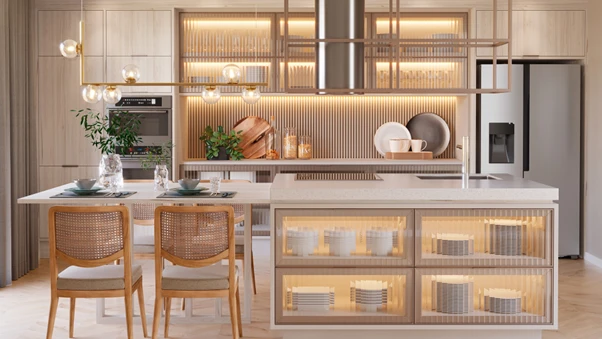 Este tipo de vidro é uma tendência inspirada nos anos 60, no estilo retrô. Suas ondulações causam um efeito dinâmico aos móveis e são ideais para armazenar os objetos de forma discreta.