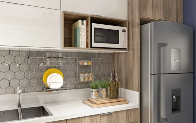 Prateleiras, nichos e cestas também são sempre bem-vindos, permitindo uma distribuição inteligente de alimentos e utensílios.