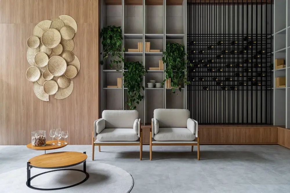 O resultado mágico da química entre a madeira e o concreto. O concreto, um material tradicionalmente associado à robustez, é reimaginado com móveis sofisticados e acabamentos premium. Superfícies de concreto polido ou com detalhes exclusivos transformam mesas e balcões em peças centrais de uma narrativa moderna e elegante.