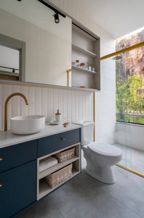 Banheiro: os móveis planejados são uma excelente opção para otimizar o uso do espaço em banheiros, principalmente quando se trata de ambientes pequenos ou com formatos irregulares. Oferecem soluções para acomodar toalhas, produtos de higiene pessoal e outros itens necessários, além de para criar um espaço mais organizado e relaxante.