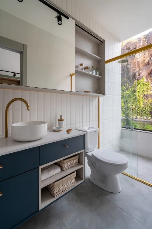 Acessórios funcionais e elegantes também fazem muita diferença nos banheiros compactos. Itens como torneiras, puxadores e espelhos que combinem com o estilo do banheiro trazem um toque especial a todo o projeto. Prefira sempre os modelos mais modernos, que agregam praticidade e sofisticação ao ambiente.