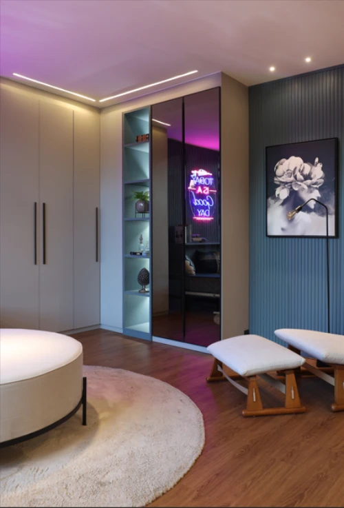 Pensando na decoração, a integração com tecnologia está em alta. Iluminação interna de LED, sistemas de abertura automática e fechaduras digitais são algumas das tendências que podem ser incorporadas nos armários de quarto planejados.