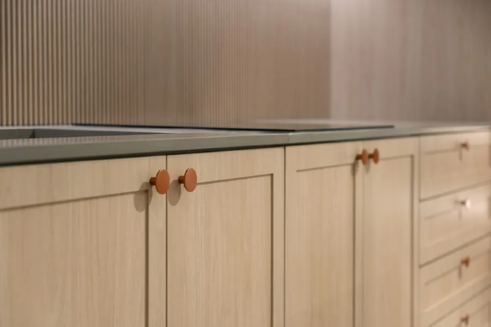 Os acabamentos também precisam acompanhar essa proposta. Bancadas em quartzo ou pedras claras ajudam a ampliar a luminosidade, enquanto tons neutros ou madeirados suaves criam transição natural com a sala. Já os revestimentos acetinados ou levemente brilhantes reforçam a sensação de amplitude sem pesar na decoração.